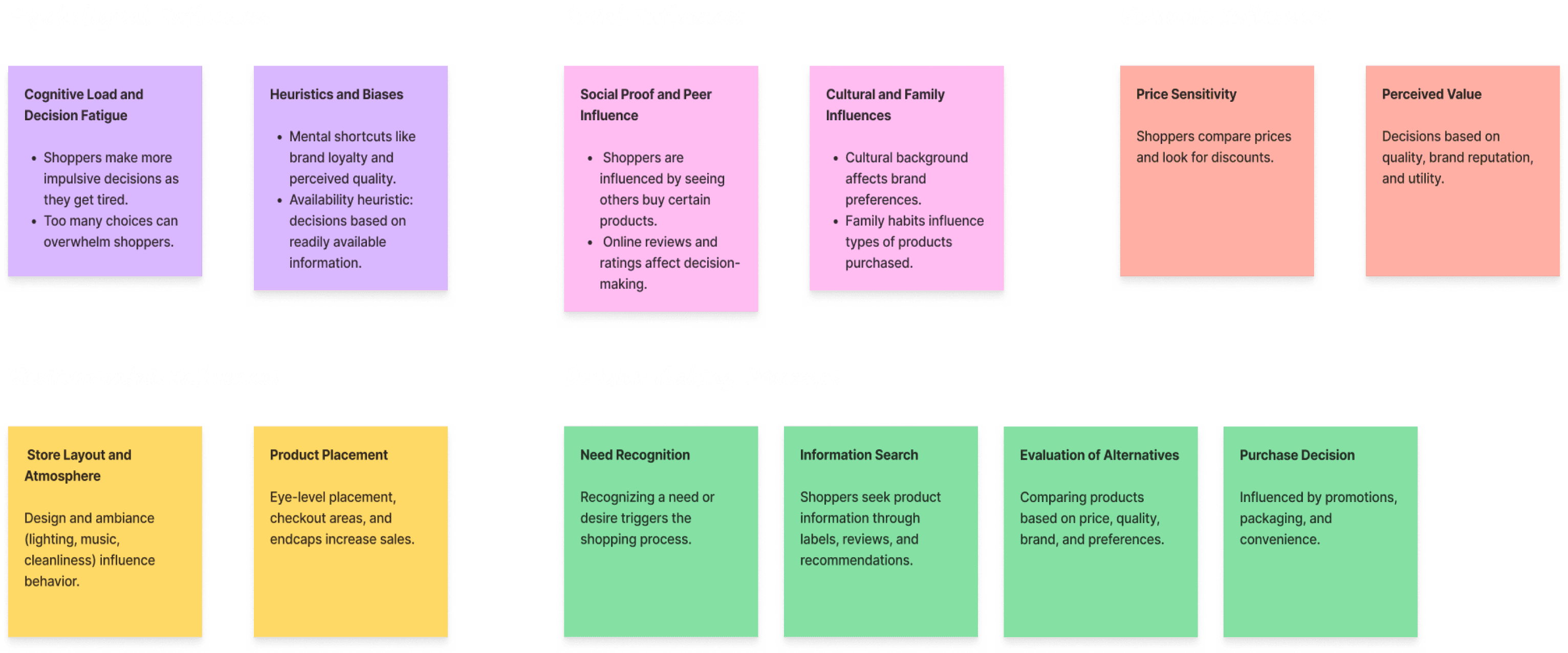 The research findings were quite insightful. By sorting them into categories using sticky notes, I gained a deeper understanding of what influenced the users and the reasons behind their decisions.